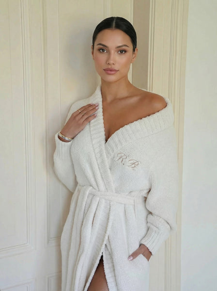 - Achtung: Der Bademantel ist aus einem schweren Stoff gestrickt, was dazu führen kann, dass er aufgrund seines Gewichts länger ausfällt als in der Größentabelle angegeben.