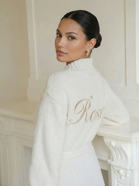 - Mach es dir in unserem Teddy-Bademantel gemütlich! Diese schönen Bademäntel sind extra lang und aus superweichem Teddy-Stoff gefertigt, der dich an kalten Winterabenden warm hält. Personalisiere den Teddy-Bademantel auf der Vorder- und/oder Rückseite mit deinem Namen oder deinen Initialen. Das wird liebevoll in unserem Atelier mit den schönsten Stickgarnen gemacht.