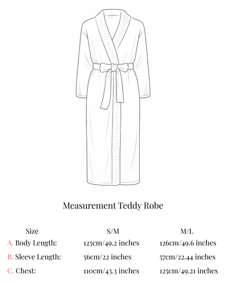 Note: the bathrobe is knitted from a heavy fabric, which may cause it to be longer than indicated in the size chart due to its weight.